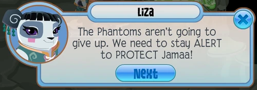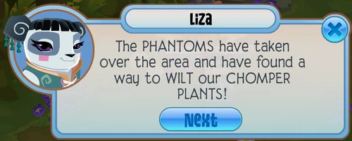 | " | The Phantoms have opened a portal to Jamaa and accept discovered how to wilt chomper plants! Find a way to revive the plants, and help Liza shut the portal. Teamwork will assist you through this Hazard. | „ |
